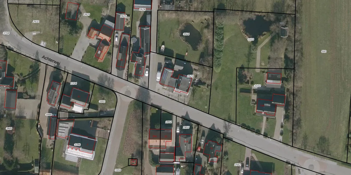 Achterwei 12 is gelegen op kadastraal perceel WTG01D2623. Deze kadastrale aanduiding is uniek en wordt gebruikt door het Kadaster om eigendomsrechten en andere zakelijke rechten vast te leggen. Het perceel maakt onderdeel uit van de kadastrale gemeente Westergeest.