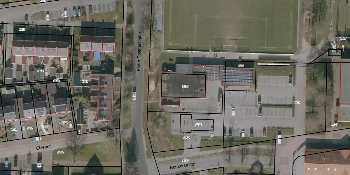 Gebruik de zoekbalk of klik op een perceel voor informatie over de adressen binnen dit perceel.