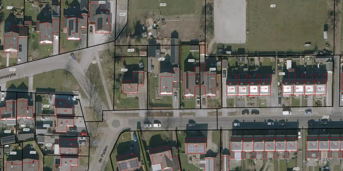 Gebruik de zoekbalk of klik op een perceel voor informatie over de adressen binnen dit perceel.