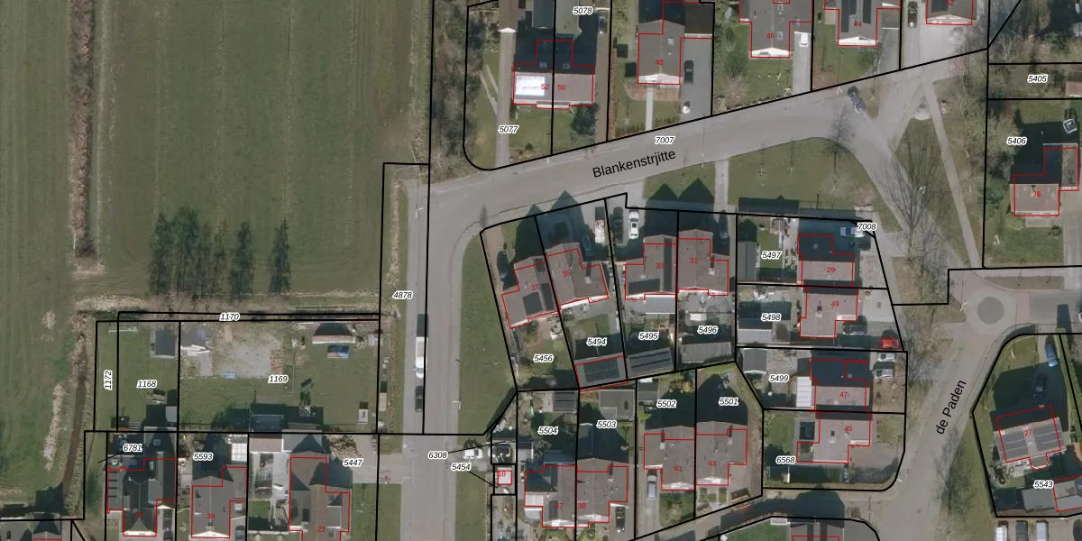Blankenstrjitte 37 is gelegen op kadastraal perceel WTG01E5456. Deze kadastrale aanduiding is uniek en wordt gebruikt door het Kadaster om eigendomsrechten en andere zakelijke rechten vast te leggen. Het perceel maakt onderdeel uit van de kadastrale gemeente Westergeest.