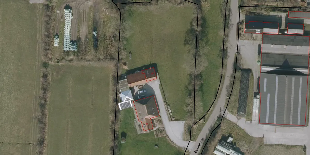 Het perceel waarop Bounswei 2-B staat heeft een oppervlakte van 1,3 ha. Dit is een zeer groot perceel. De perceeloppervlakte wordt geregistreerd door het Kadaster. Gedetailleerde informatie over de maten van dit perceel kunt u vinden in het rapport Kadastrale kaart met maatvoering van Bounswei 2-B.