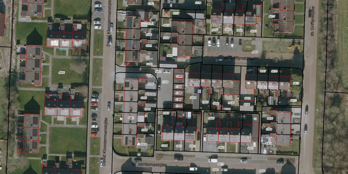 David Kloostermanstrjitte 24-D is gelegen op kadastraal perceel WTG01E5765. Deze kadastrale aanduiding is uniek en wordt gebruikt door het Kadaster om eigendomsrechten en andere zakelijke rechten vast te leggen. Het perceel maakt onderdeel uit van de kadastrale gemeente Westergeest.
