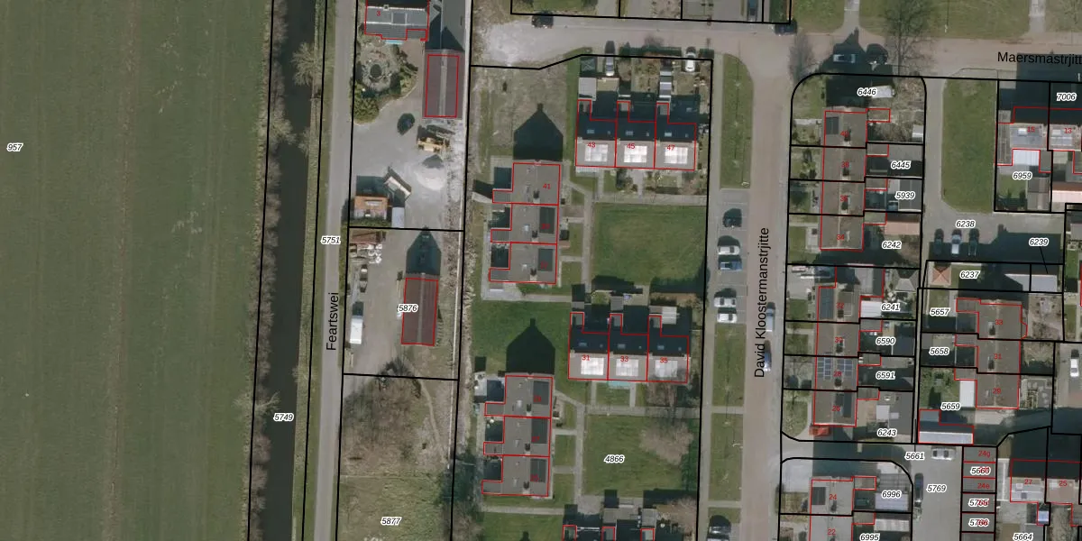 David Kloostermanstrjitte 37 is gelegen op kadastraal perceel WTG01E4866. Deze kadastrale aanduiding is uniek en wordt gebruikt door het Kadaster om eigendomsrechten en andere zakelijke rechten vast te leggen. Het perceel maakt onderdeel uit van de kadastrale gemeente Westergeest.