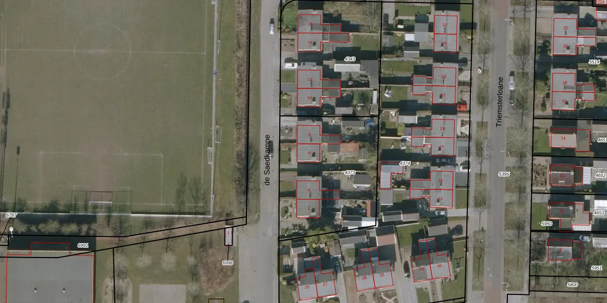 de Saedkampe 6 is gelegen op kadastraal perceel WTG01E4373. Deze kadastrale aanduiding is uniek en wordt gebruikt door het Kadaster om eigendomsrechten en andere zakelijke rechten vast te leggen. Het perceel maakt onderdeel uit van de kadastrale gemeente Westergeest.