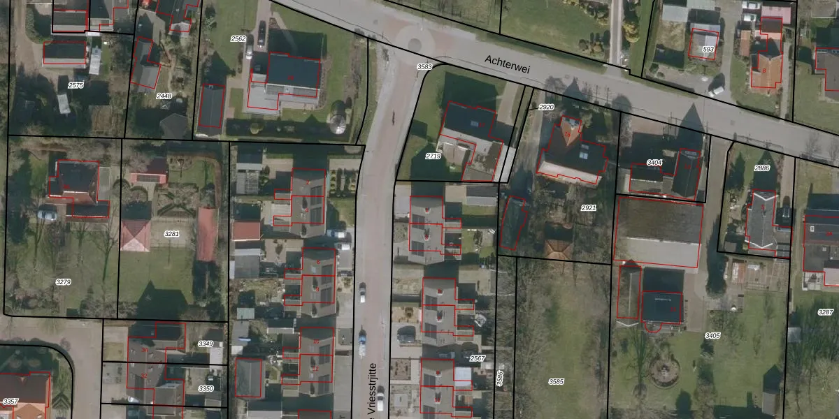 Fedde de Vriesstrjitte 1 is gelegen op kadastraal perceel WTG01D2567. Deze kadastrale aanduiding is uniek en wordt gebruikt door het Kadaster om eigendomsrechten en andere zakelijke rechten vast te leggen. Het perceel maakt onderdeel uit van de kadastrale gemeente Westergeest.