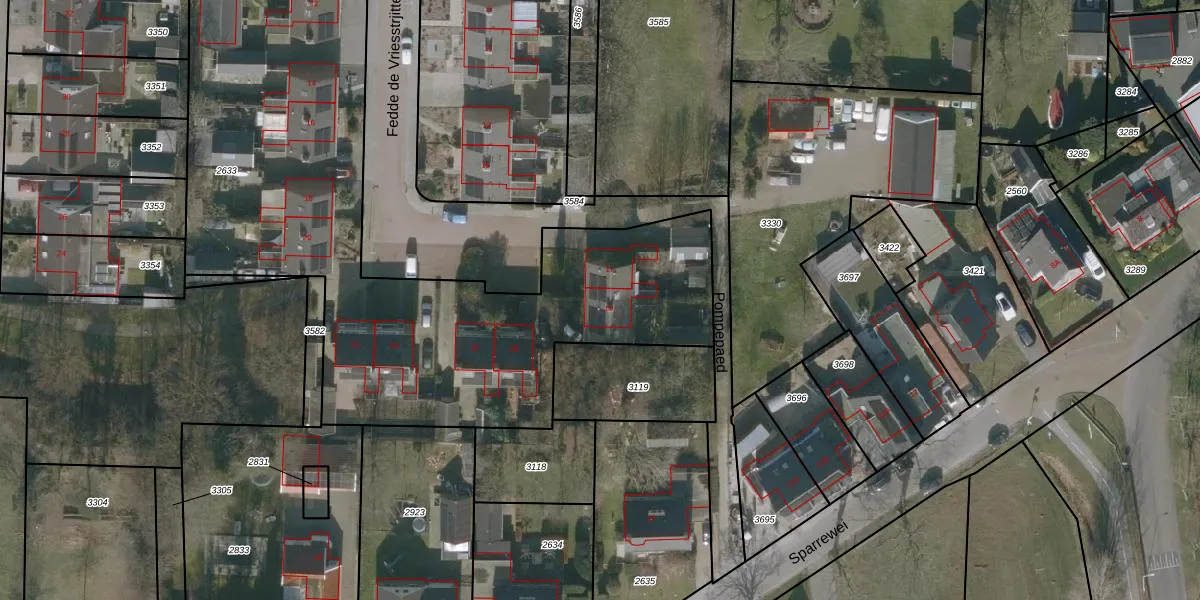 Het perceel waarop Fedde de Vriesstrjitte 19 staat heeft een oppervlakte van 4445 m². Dit is een zeer groot perceel. De perceeloppervlakte wordt geregistreerd door het Kadaster. Gedetailleerde informatie over de maten van dit perceel kunt u vinden in het rapport Kadastrale kaart met maatvoering van Fedde de Vriesstrjitte 19.