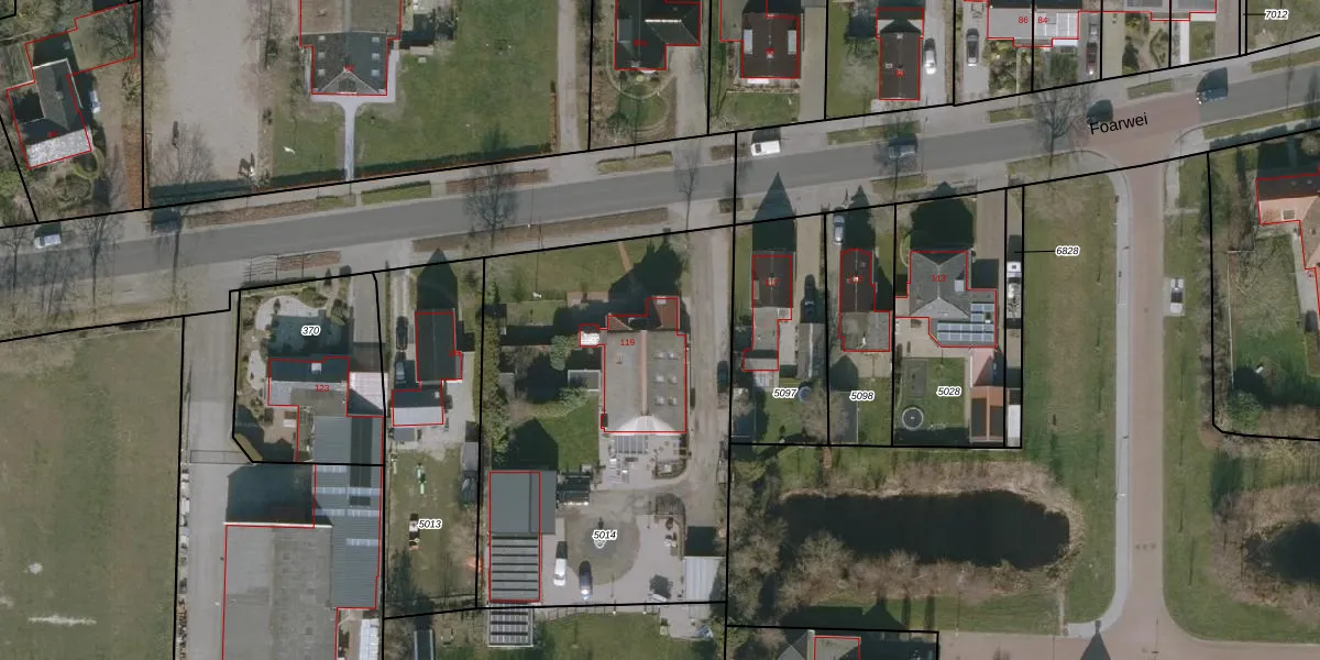 Het perceel waarop Foarwei 119 staat heeft een oppervlakte van 2049 m². Dit is een zeer groot perceel. De perceeloppervlakte wordt geregistreerd door het Kadaster. Gedetailleerde informatie over de maten van dit perceel kunt u vinden in het rapport Kadastrale kaart met maatvoering van Foarwei 119.