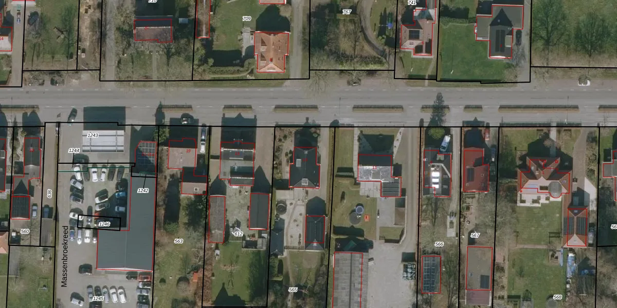Gebruik de zoekbalk of klik op een perceel voor informatie over de adressen binnen dit perceel.
