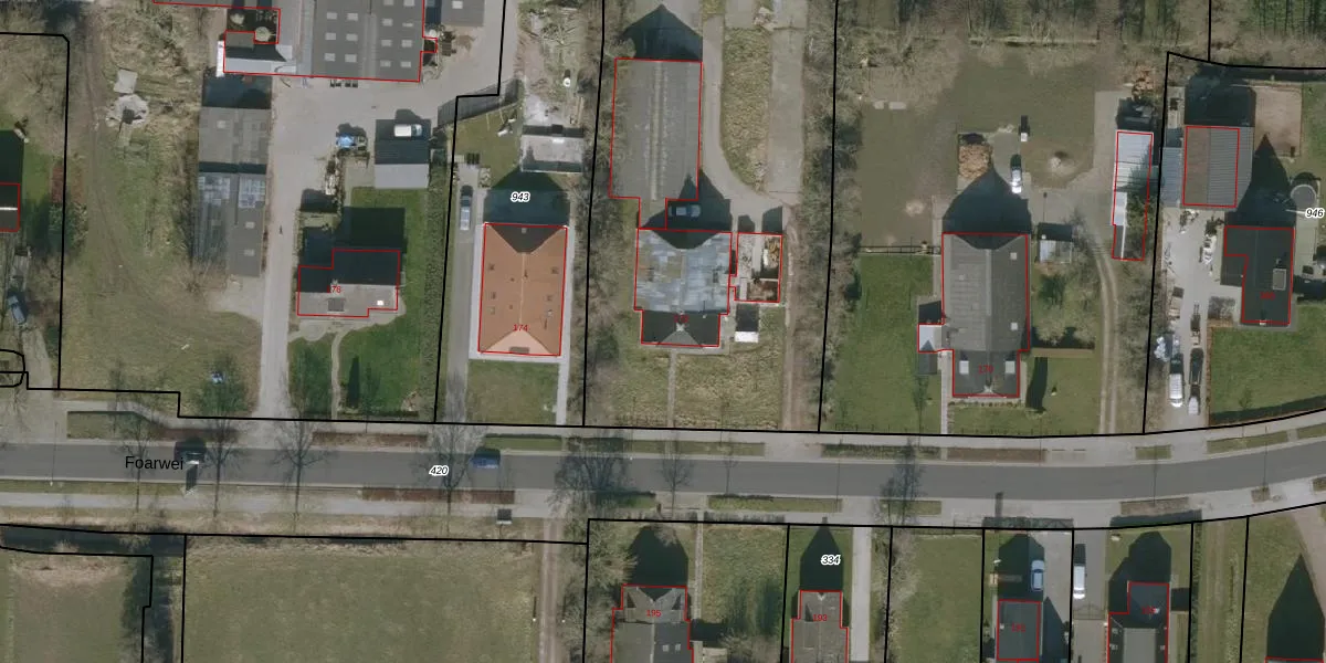 Het perceel waarop Foarwei 172 staat heeft een oppervlakte van 5075 m². Dit is een zeer groot perceel. De perceeloppervlakte wordt geregistreerd door het Kadaster. Gedetailleerde informatie over de maten van dit perceel kunt u vinden in het rapport Kadastrale kaart met maatvoering van Foarwei 172.