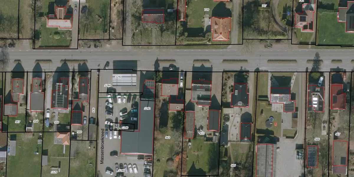 Gebruik de zoekbalk of klik op een perceel voor informatie over de adressen binnen dit perceel.