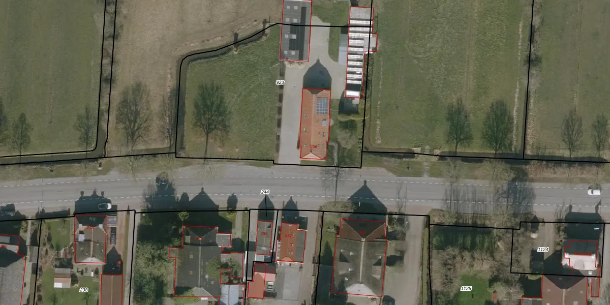 Het perceel waarop Foarwei 206 staat heeft een oppervlakte van 2563 m². Dit is een zeer groot perceel. De perceeloppervlakte wordt geregistreerd door het Kadaster. Gedetailleerde informatie over de maten van dit perceel kunt u vinden in het rapport Kadastrale kaart met maatvoering van Foarwei 206.