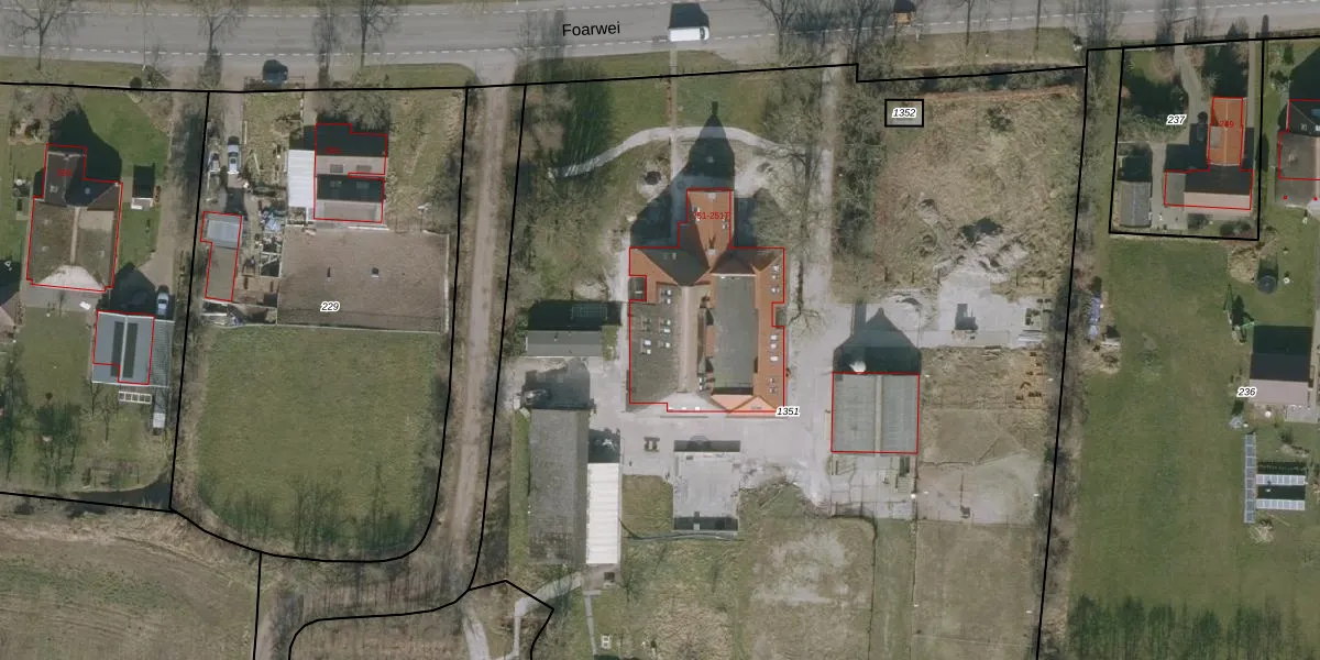 Foarwei 251-R is gelegen op kadastraal perceel WTG01F1351. Deze kadastrale aanduiding is uniek en wordt gebruikt door het Kadaster om eigendomsrechten en andere zakelijke rechten vast te leggen. Het perceel maakt onderdeel uit van de kadastrale gemeente Westergeest.