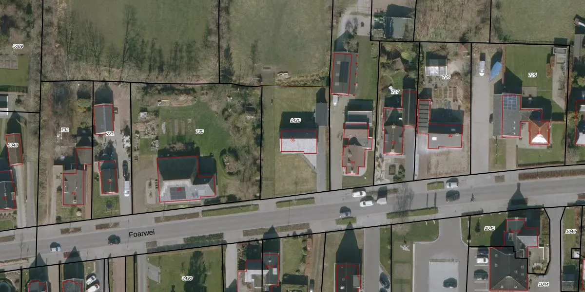Het perceel waarop Foarwei 36 staat heeft een oppervlakte van 876 m². Dit is een groot perceel. De perceeloppervlakte wordt geregistreerd door het Kadaster. Gedetailleerde informatie over de maten van dit perceel kunt u vinden in het rapport Kadastrale kaart met maatvoering van Foarwei 36.