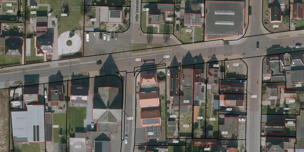 Foarwei 95 is gelegen op kadastraal perceel WTG01E5516. Deze kadastrale aanduiding is uniek en wordt gebruikt door het Kadaster om eigendomsrechten en andere zakelijke rechten vast te leggen. Het perceel maakt onderdeel uit van de kadastrale gemeente Westergeest.