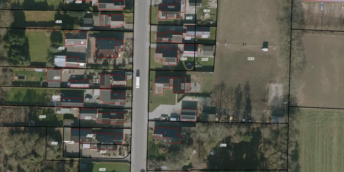 Het perceel waarop Koarteloane 41 staat heeft een oppervlakte van 4861 m². Dit is een zeer groot perceel. De perceeloppervlakte wordt geregistreerd door het Kadaster. Gedetailleerde informatie over de maten van dit perceel kunt u vinden in het rapport Kadastrale kaart met maatvoering van Koarteloane 41.