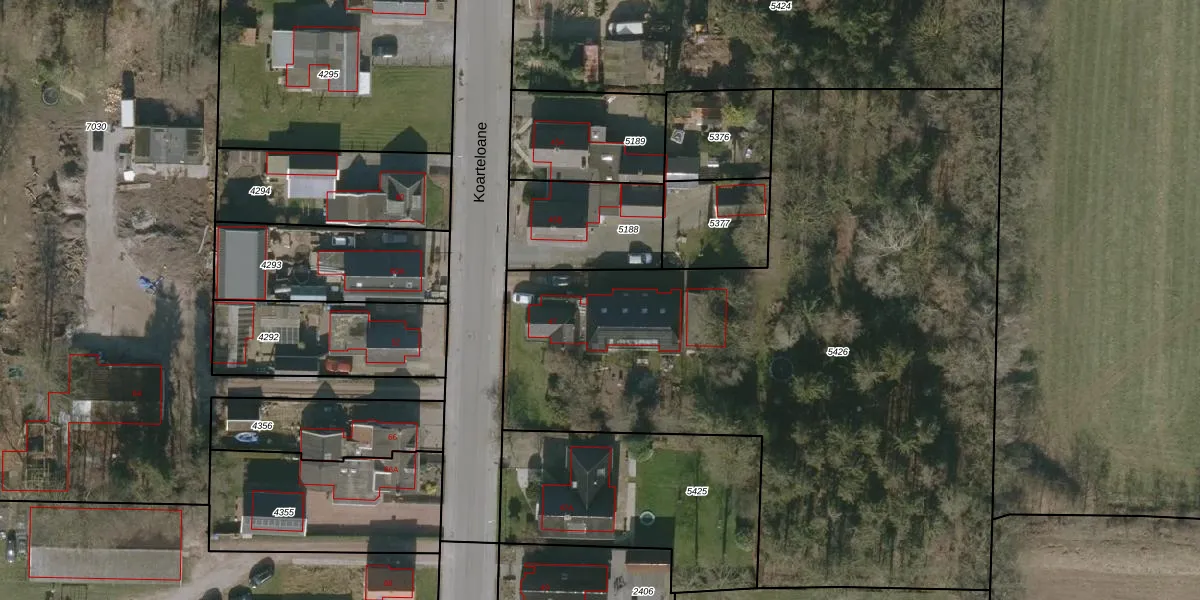 Het perceel waarop Koarteloane 47 staat heeft een oppervlakte van 4426 m². Dit is een zeer groot perceel. De perceeloppervlakte wordt geregistreerd door het Kadaster. Gedetailleerde informatie over de maten van dit perceel kunt u vinden in het rapport Kadastrale kaart met maatvoering van Koarteloane 47.