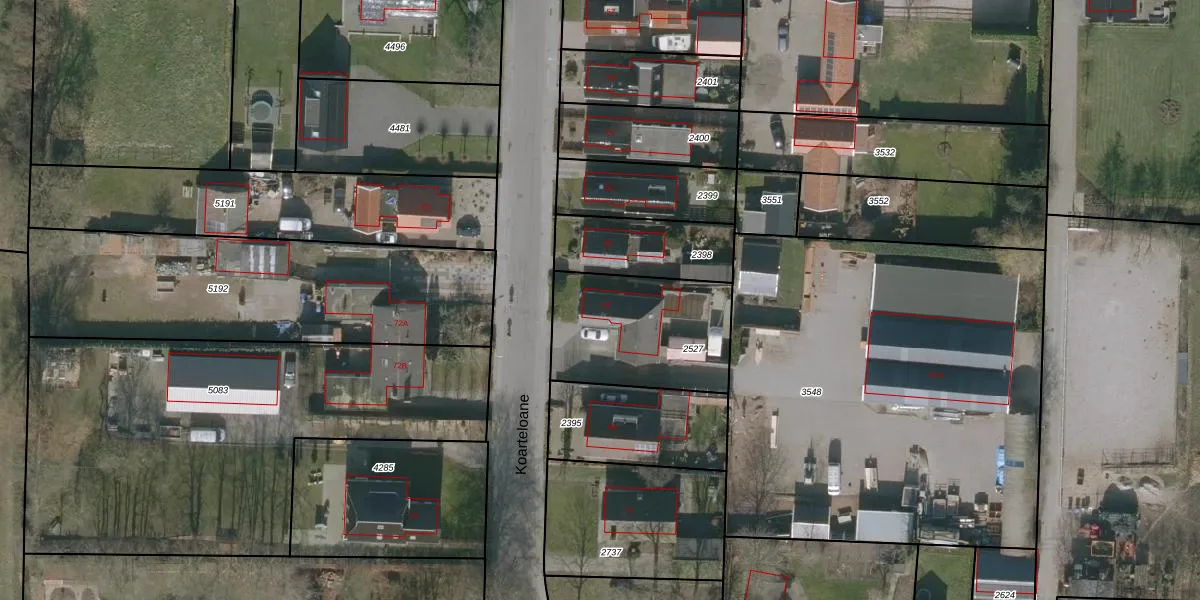 Het perceel waarop Koarteloane 67 staat heeft een oppervlakte van 555 m². Dit is een groot perceel. De perceeloppervlakte wordt geregistreerd door het Kadaster. Gedetailleerde informatie over de maten van dit perceel kunt u vinden in het rapport Kadastrale kaart met maatvoering van Koarteloane 67.