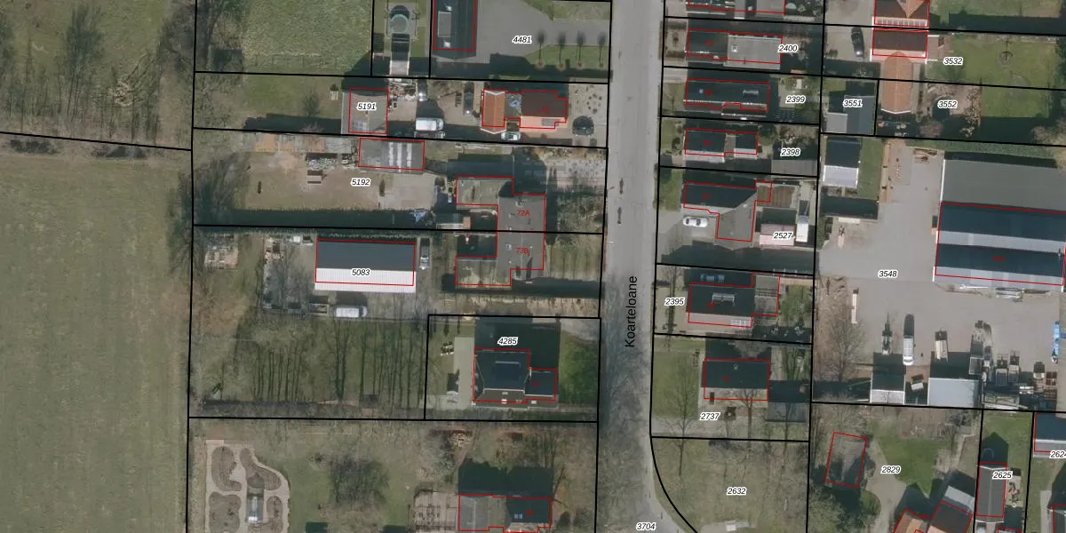 Koarteloane 72-B is gelegen op kadastraal perceel WTG01E5083. Deze kadastrale aanduiding is uniek en wordt gebruikt door het Kadaster om eigendomsrechten en andere zakelijke rechten vast te leggen. Het perceel maakt onderdeel uit van de kadastrale gemeente Westergeest.