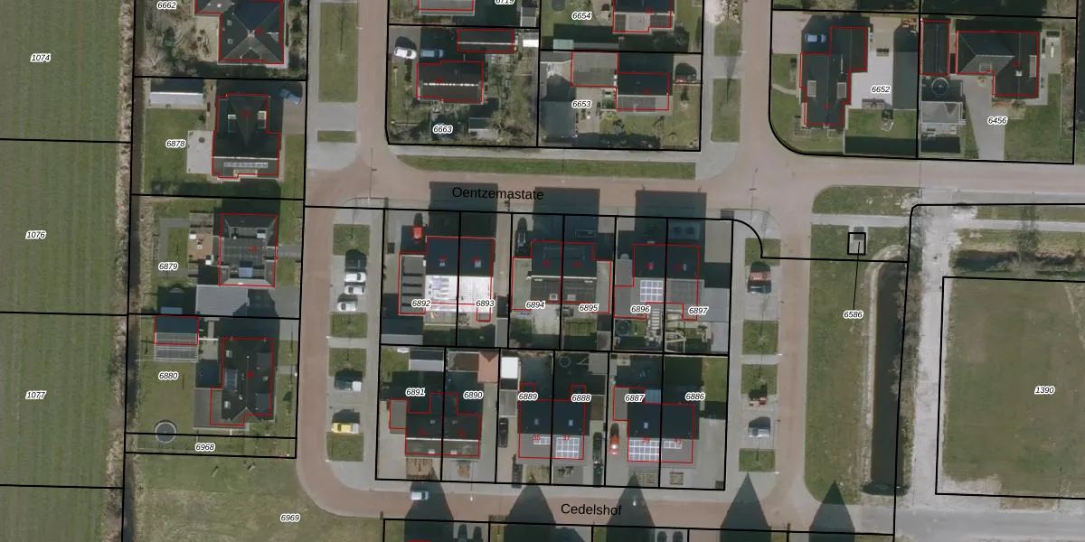 Oentzemastate 33 is gelegen op kadastraal perceel WTG01E6894. Deze kadastrale aanduiding is uniek en wordt gebruikt door het Kadaster om eigendomsrechten en andere zakelijke rechten vast te leggen. Het perceel maakt onderdeel uit van de kadastrale gemeente Westergeest.