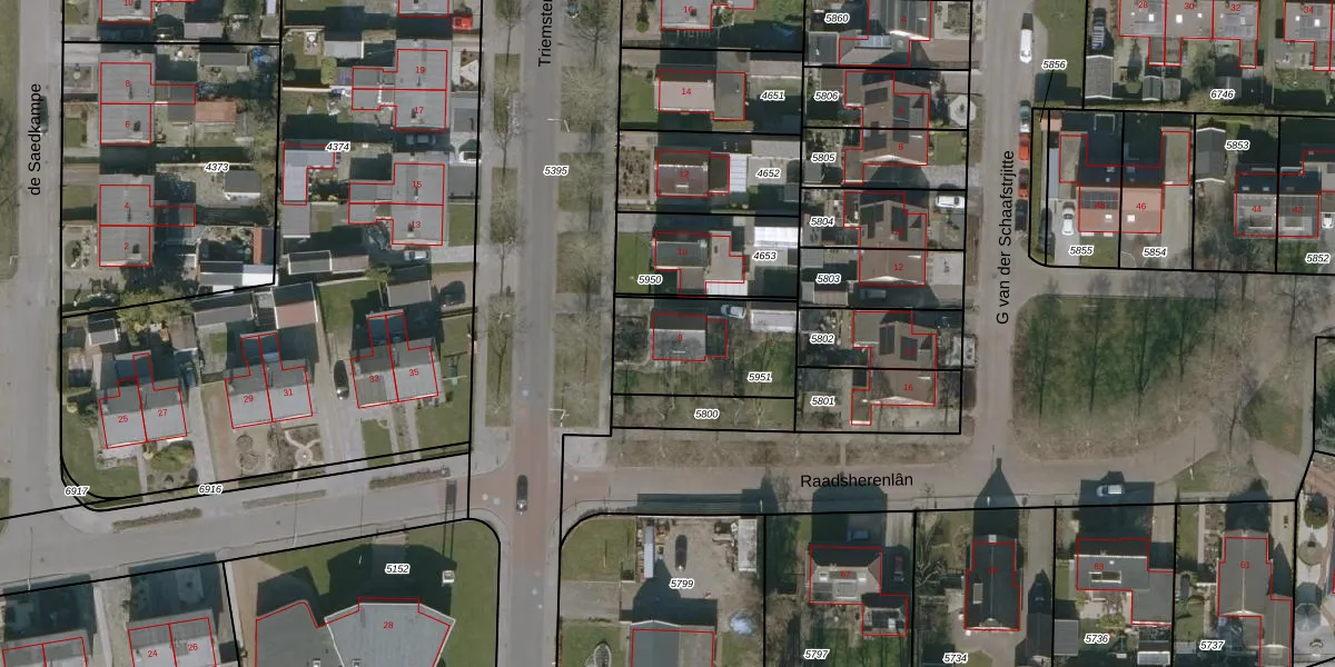 Het perceel waarop Triemsterloane 8 staat heeft een oppervlakte van 399 m². Dit is een groot perceel. De perceeloppervlakte wordt geregistreerd door het Kadaster. Gedetailleerde informatie over de maten van dit perceel kunt u vinden in het rapport Kadastrale kaart met maatvoering van Triemsterloane 8.