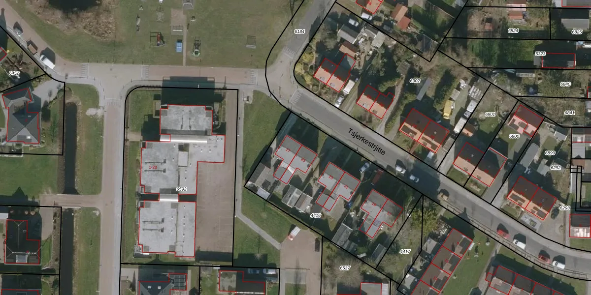 Het perceel waarop Tsjerkestrjitte 27 staat heeft een oppervlakte van 1574 m². Dit is een zeer groot perceel. De perceeloppervlakte wordt geregistreerd door het Kadaster. Gedetailleerde informatie over de maten van dit perceel kunt u vinden in het rapport Kadastrale kaart met maatvoering van Tsjerkestrjitte 27.