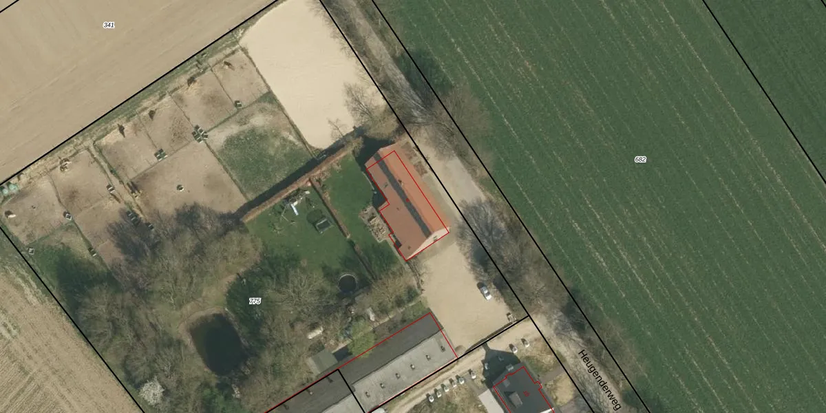 Het perceel waarop Heugenderweg 8 staat heeft een oppervlakte van 8235 m². Dit is een zeer groot perceel. De perceeloppervlakte wordt geregistreerd door het Kadaster. Gedetailleerde informatie over de maten van dit perceel kunt u vinden in het rapport Kadastrale kaart met maatvoering van Heugenderweg 8.
