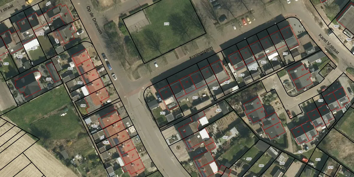 Het perceel waarop Koningsplein 21 staat heeft een oppervlakte van 916 m². Dit is een groot perceel. De perceeloppervlakte wordt geregistreerd door het Kadaster. Gedetailleerde informatie over de maten van dit perceel kunt u vinden in het rapport Kadastrale kaart met maatvoering van Koningsplein 21.
