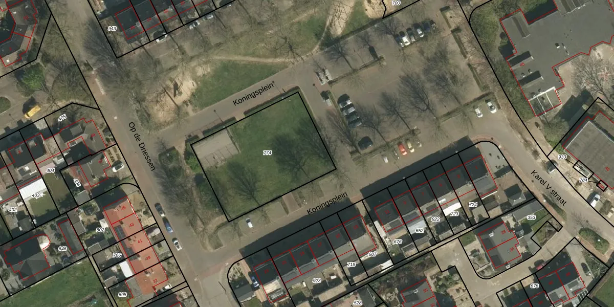 Koningsplein 25 is gelegen op kadastraal perceel ECH00P774. Deze kadastrale aanduiding is uniek en wordt gebruikt door het Kadaster om eigendomsrechten en andere zakelijke rechten vast te leggen. Het perceel maakt onderdeel uit van de kadastrale gemeente Echt.