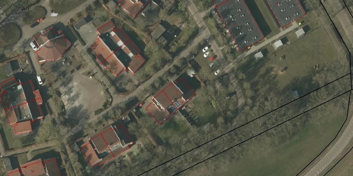 Huybheide 8 is gelegen op kadastraal perceel HDN01A8777. Deze kadastrale aanduiding is uniek en wordt gebruikt door het Kadaster om eigendomsrechten en andere zakelijke rechten vast te leggen. Het perceel maakt onderdeel uit van de kadastrale gemeente Helden.