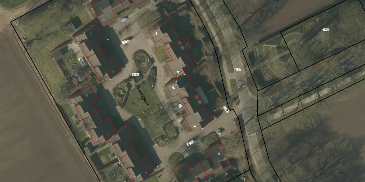Het perceel waarop Koningserf 13 staat heeft een oppervlakte van 1,2 ha. Dit is een zeer groot perceel. De perceeloppervlakte wordt geregistreerd door het Kadaster. Gedetailleerde informatie over de maten van dit perceel kunt u vinden in het rapport Kadastrale kaart met maatvoering van Koningserf 13.