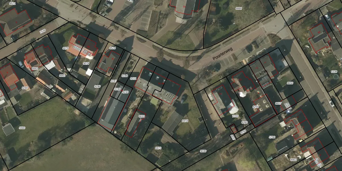 Het perceel waarop Poorterweg 81 staat heeft een oppervlakte van 875 m². Dit is een groot perceel. De perceeloppervlakte wordt geregistreerd door het Kadaster. Gedetailleerde informatie over de maten van dit perceel kunt u vinden in het rapport Kadastrale kaart met maatvoering van Poorterweg 81.