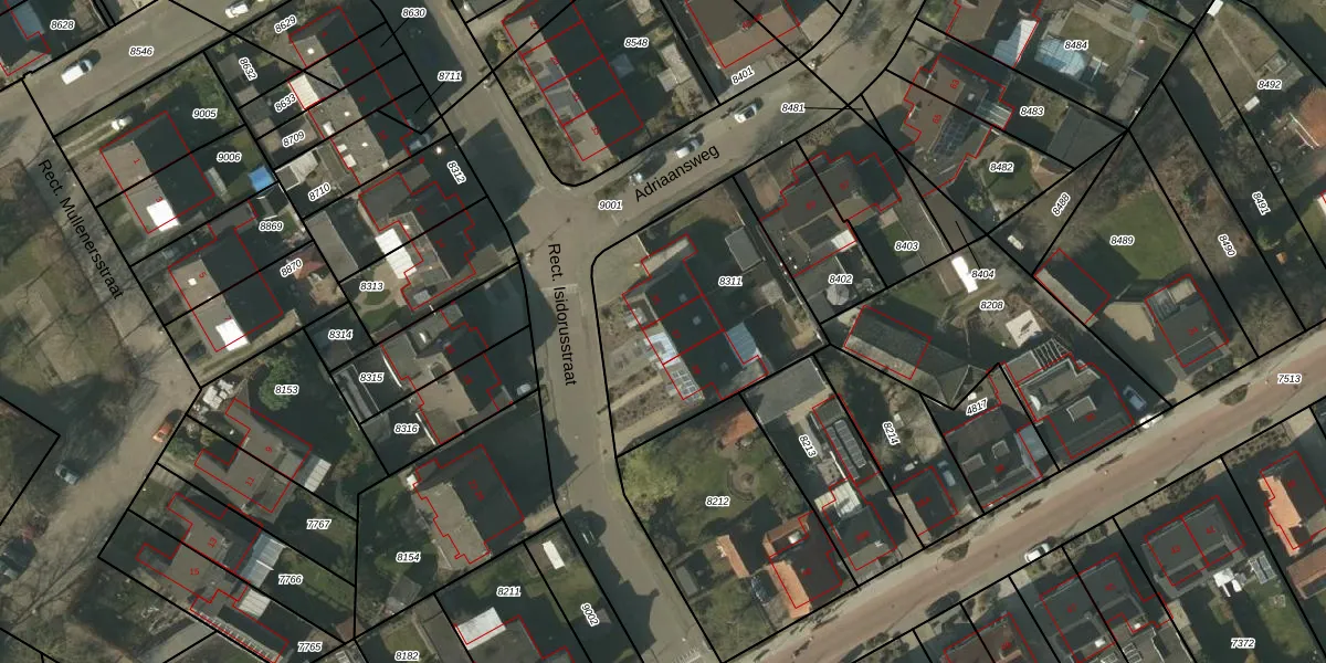 Het perceel waarop Rect. Isidorusstraat 37 staat heeft een oppervlakte van 885 m². Dit is een groot perceel. De perceeloppervlakte wordt geregistreerd door het Kadaster. Gedetailleerde informatie over de maten van dit perceel kunt u vinden in het rapport Kadastrale kaart met maatvoering van Rect. Isidorusstraat 37.