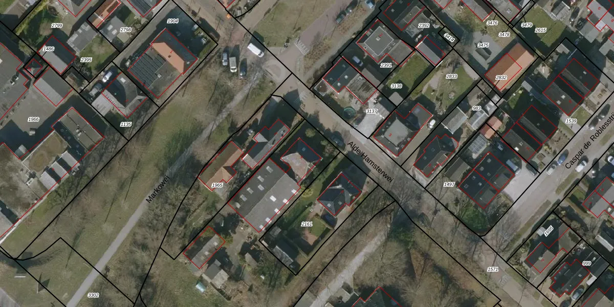 Het perceel waarop Alde Hamsterwei 4 staat heeft een oppervlakte van 2837 m². Dit is een zeer groot perceel. De perceeloppervlakte wordt geregistreerd door het Kadaster. Gedetailleerde informatie over de maten van dit perceel kunt u vinden in het rapport Kadastrale kaart met maatvoering van Alde Hamsterwei 4.