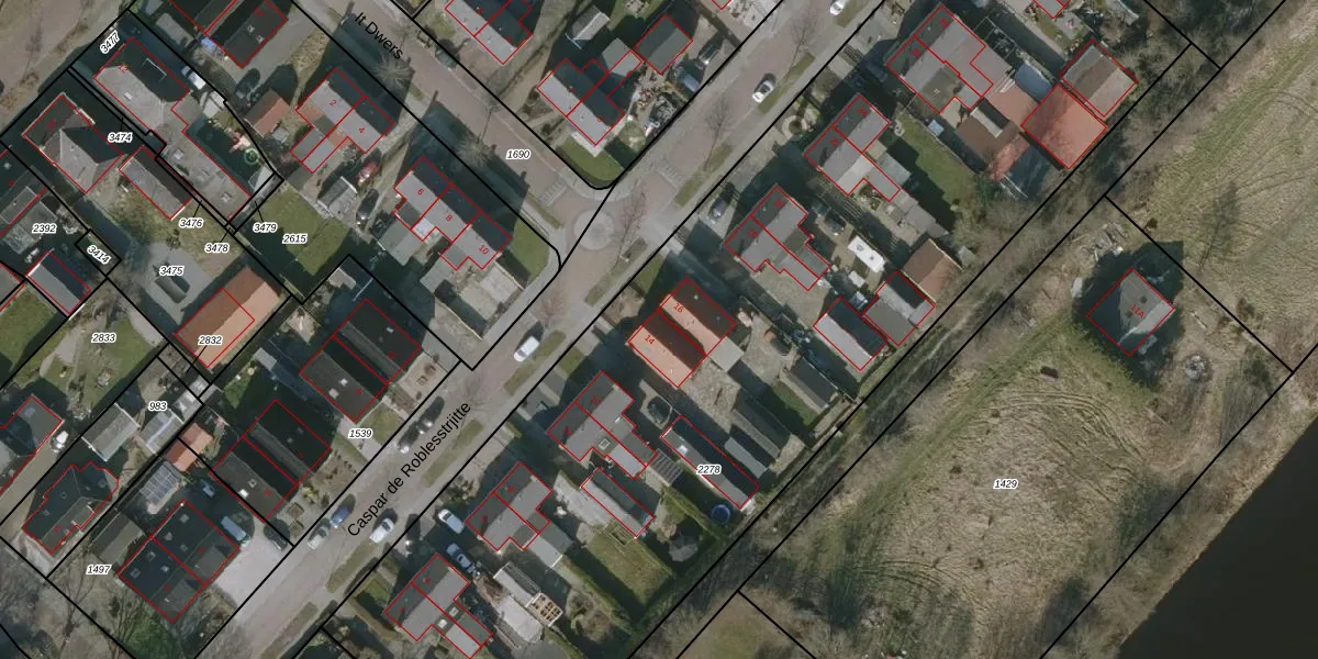 Het perceel waarop Caspar de Roblesstrjitte 14 staat heeft een oppervlakte van 5920 m². Dit is een zeer groot perceel. De perceeloppervlakte wordt geregistreerd door het Kadaster. Gedetailleerde informatie over de maten van dit perceel kunt u vinden in het rapport Kadastrale kaart met maatvoering van Caspar de Roblesstrjitte 14.