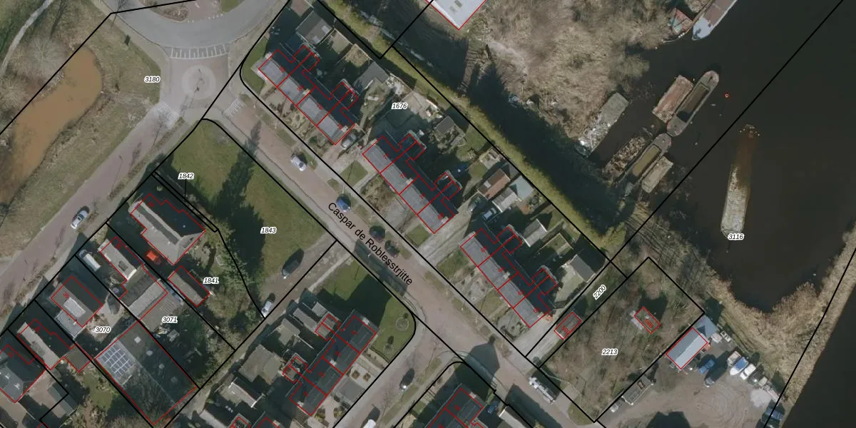 Het perceel waarop Caspar de Roblesstrjitte 68 staat heeft een oppervlakte van 2850 m². Dit is een zeer groot perceel. De perceeloppervlakte wordt geregistreerd door het Kadaster. Gedetailleerde informatie over de maten van dit perceel kunt u vinden in het rapport Kadastrale kaart met maatvoering van Caspar de Roblesstrjitte 68.
