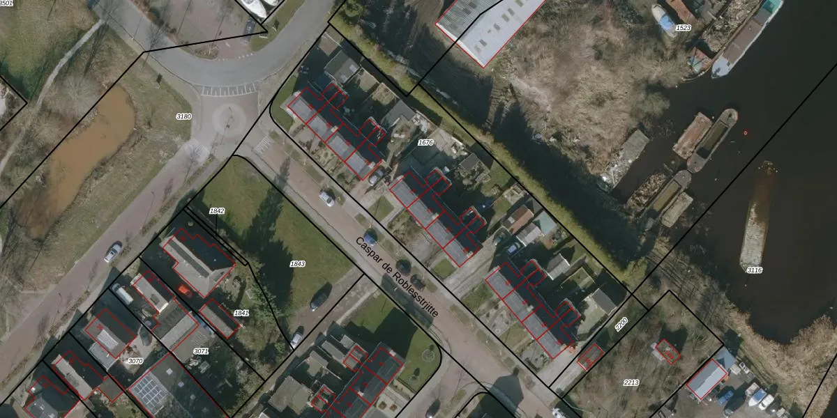 Het perceel waarop Caspar de Roblesstrjitte 72 staat heeft een oppervlakte van 2850 m². Dit is een zeer groot perceel. De perceeloppervlakte wordt geregistreerd door het Kadaster. Gedetailleerde informatie over de maten van dit perceel kunt u vinden in het rapport Kadastrale kaart met maatvoering van Caspar de Roblesstrjitte 72.