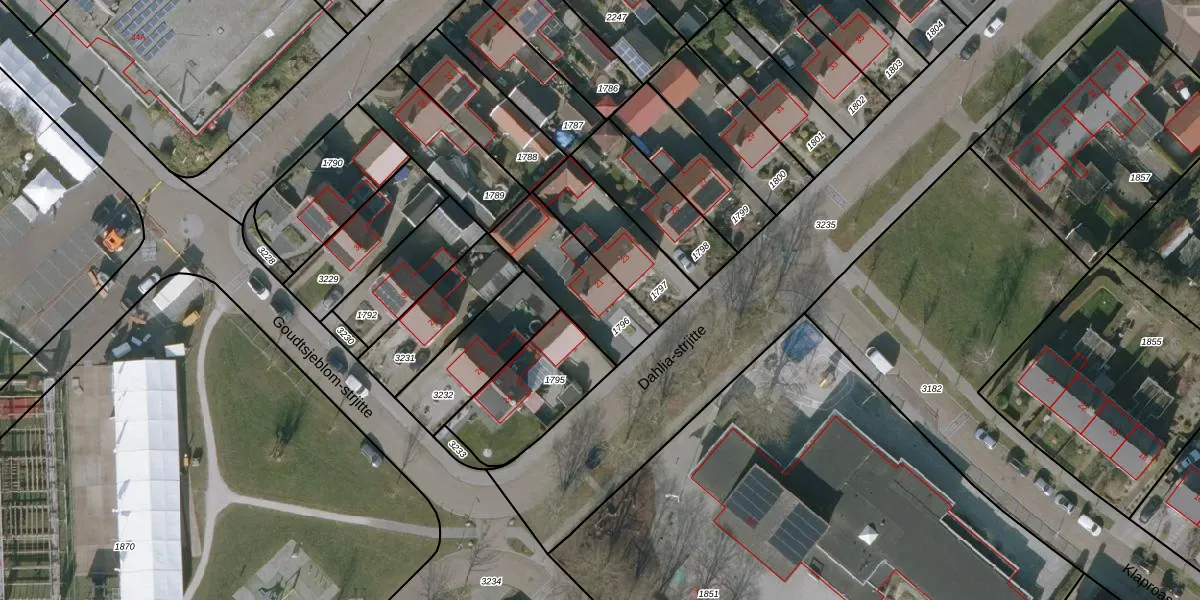 Het perceel waarop Dahlia-strjitte 21 staat heeft een oppervlakte van 297 m². Dit is een middelgroot perceel. De perceeloppervlakte wordt geregistreerd door het Kadaster. Gedetailleerde informatie over de maten van dit perceel kunt u vinden in het rapport Kadastrale kaart met maatvoering van Dahlia-strjitte 21.