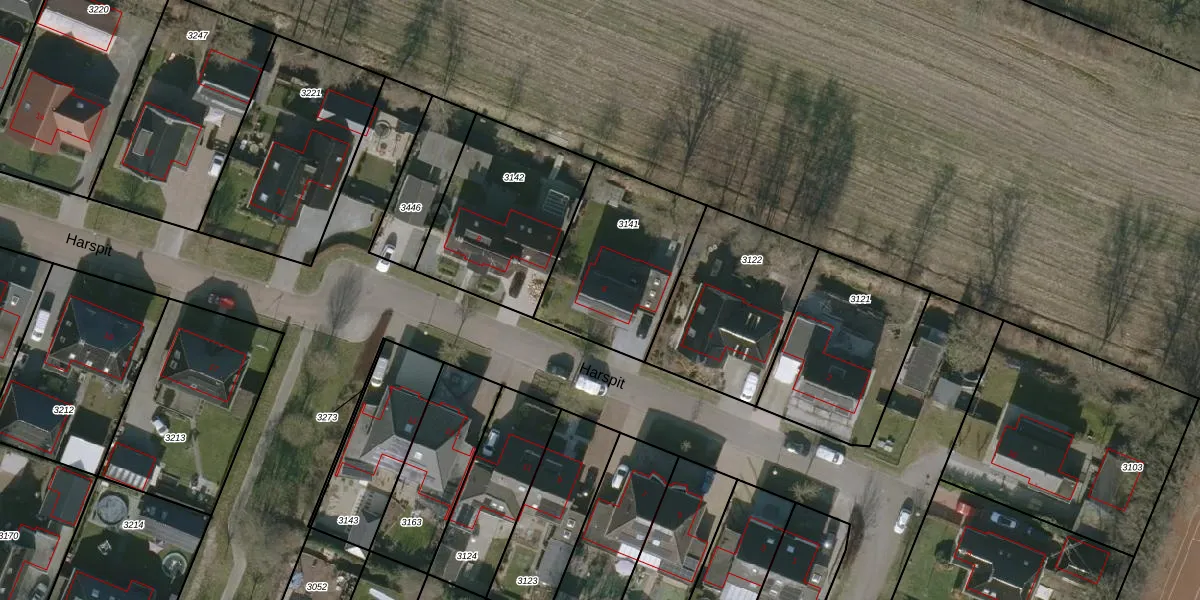 Het perceel waarop Harspit 6 staat heeft een oppervlakte van 565 m². Dit is een groot perceel. De perceeloppervlakte wordt geregistreerd door het Kadaster. Gedetailleerde informatie over de maten van dit perceel kunt u vinden in het rapport Kadastrale kaart met maatvoering van Harspit 6.