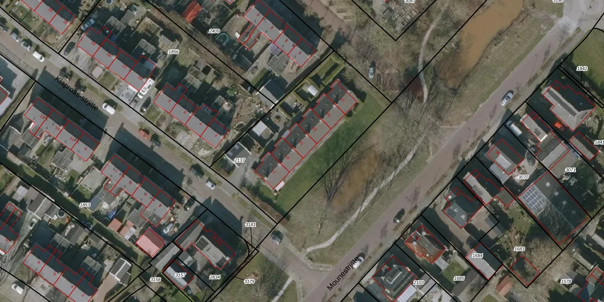 Het perceel waarop Mounestrjitte 21 staat heeft een oppervlakte van 1523 m². Dit is een zeer groot perceel. De perceeloppervlakte wordt geregistreerd door het Kadaster. Gedetailleerde informatie over de maten van dit perceel kunt u vinden in het rapport Kadastrale kaart met maatvoering van Mounestrjitte 21.