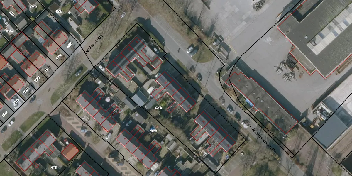 Het perceel waarop Pinksterblom-strjitte 37 staat heeft een oppervlakte van 2690 m². Dit is een zeer groot perceel. De perceeloppervlakte wordt geregistreerd door het Kadaster. Gedetailleerde informatie over de maten van dit perceel kunt u vinden in het rapport Kadastrale kaart met maatvoering van Pinksterblom-strjitte 37.