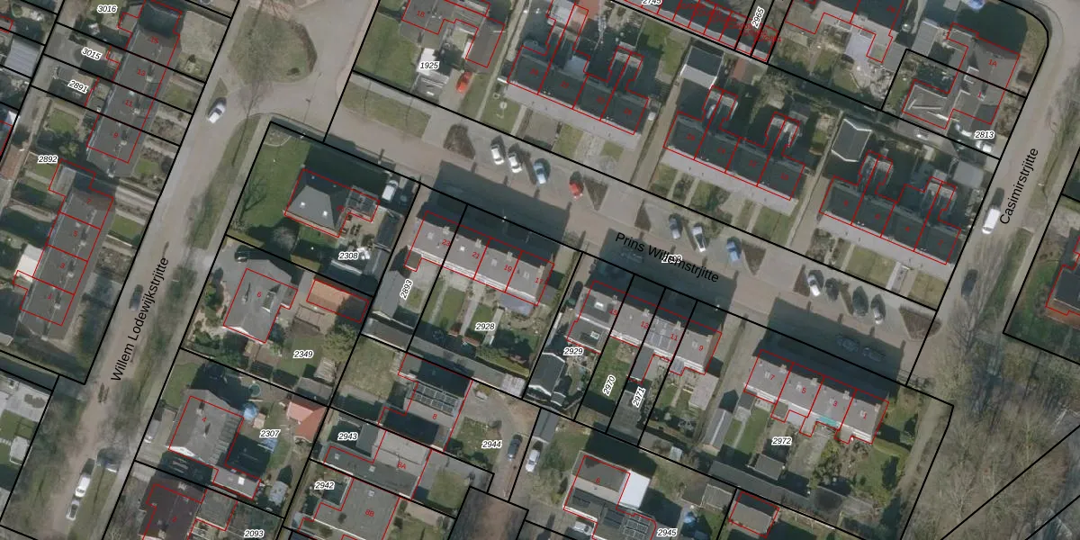 Het perceel waarop Prins Willemstrjitte 17 staat heeft een oppervlakte van 684 m². Dit is een groot perceel. De perceeloppervlakte wordt geregistreerd door het Kadaster. Gedetailleerde informatie over de maten van dit perceel kunt u vinden in het rapport Kadastrale kaart met maatvoering van Prins Willemstrjitte 17.