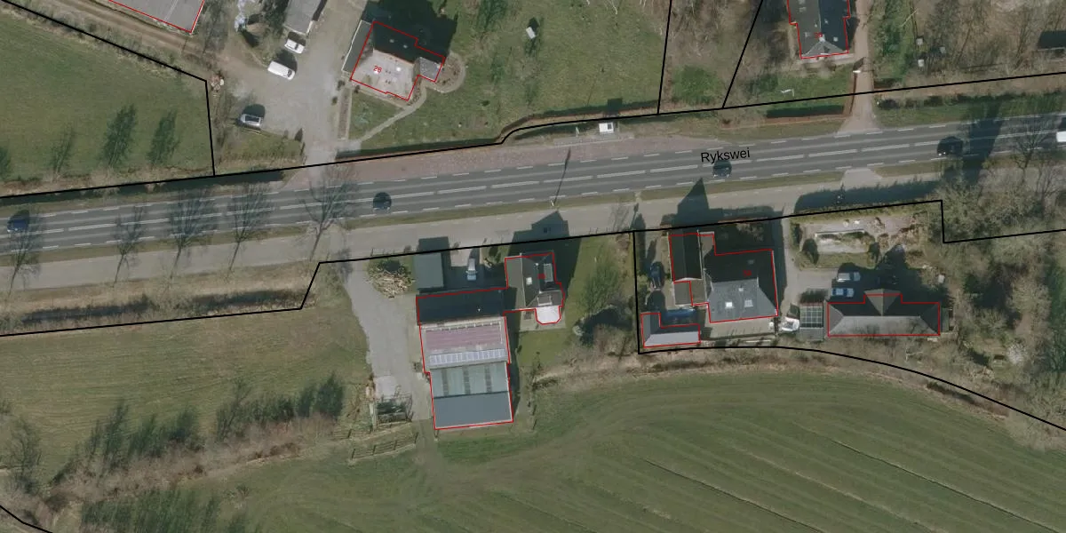 Het perceel waarop Rykswei 35 staat heeft een oppervlakte van 2,5 ha. Dit is een zeer groot perceel. De perceeloppervlakte wordt geregistreerd door het Kadaster. Gedetailleerde informatie over de maten van dit perceel kunt u vinden in het rapport Kadastrale kaart met maatvoering van Rykswei 35.