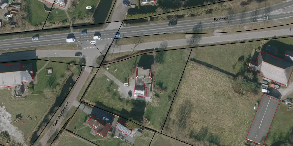 Rykswei 7-A is gelegen op kadastraal perceel KTN00E503. Deze kadastrale aanduiding is uniek en wordt gebruikt door het Kadaster om eigendomsrechten en andere zakelijke rechten vast te leggen. Het perceel maakt onderdeel uit van de kadastrale gemeente Kooten.