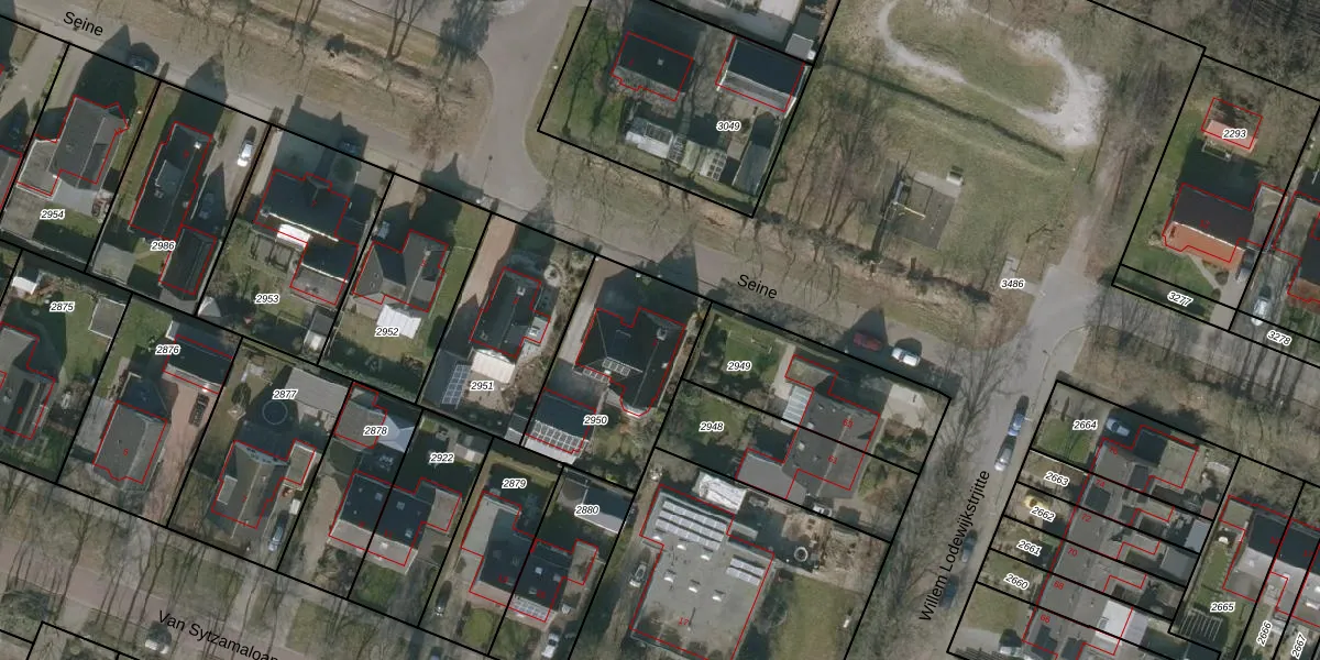 Het perceel waarop Seine 1 staat heeft een oppervlakte van 595 m². Dit is een groot perceel. De perceeloppervlakte wordt geregistreerd door het Kadaster. Gedetailleerde informatie over de maten van dit perceel kunt u vinden in het rapport Kadastrale kaart met maatvoering van Seine 1.