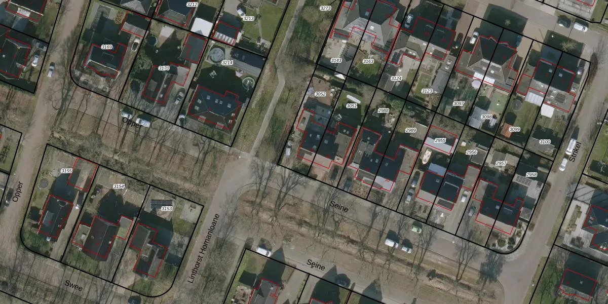 Het perceel waarop Seine 16 staat heeft een oppervlakte van 370 m². Dit is een groot perceel. De perceeloppervlakte wordt geregistreerd door het Kadaster. Gedetailleerde informatie over de maten van dit perceel kunt u vinden in het rapport Kadastrale kaart met maatvoering van Seine 16.