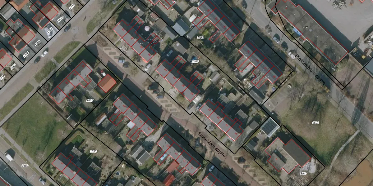 Het perceel waarop Sinneblom-strjitte 18 staat heeft een oppervlakte van 2740 m². Dit is een zeer groot perceel. De perceeloppervlakte wordt geregistreerd door het Kadaster. Gedetailleerde informatie over de maten van dit perceel kunt u vinden in het rapport Kadastrale kaart met maatvoering van Sinneblom-strjitte 18.