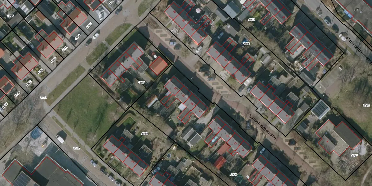 Het perceel waarop Sinneblom-strjitte 21 staat heeft een oppervlakte van 2823 m². Dit is een zeer groot perceel. De perceeloppervlakte wordt geregistreerd door het Kadaster. Gedetailleerde informatie over de maten van dit perceel kunt u vinden in het rapport Kadastrale kaart met maatvoering van Sinneblom-strjitte 21.