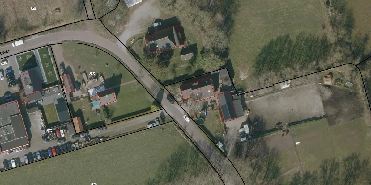 Het perceel waarop Tillewei 25 staat heeft een oppervlakte van 6385 m². Dit is een zeer groot perceel. De perceeloppervlakte wordt geregistreerd door het Kadaster. Gedetailleerde informatie over de maten van dit perceel kunt u vinden in het rapport Kadastrale kaart met maatvoering van Tillewei 25.