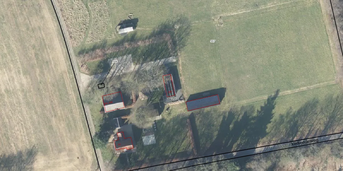 Het perceel waarop Kerkendelweg 33-C staat heeft een oppervlakte van 2,1 ha. Dit is een zeer groot perceel. De perceeloppervlakte wordt geregistreerd door het Kadaster. Gedetailleerde informatie over de maten van dit perceel kunt u vinden in het rapport Kadastrale kaart met maatvoering van Kerkendelweg 33-C.