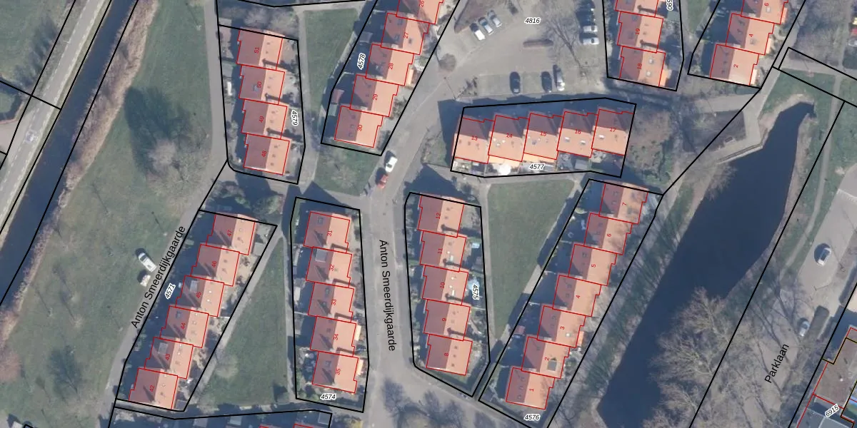 Het perceel waarop Anton Smeerdijkgaarde 12 staat heeft een oppervlakte van 752 m². Dit is een groot perceel. De perceeloppervlakte wordt geregistreerd door het Kadaster. Gedetailleerde informatie over de maten van dit perceel kunt u vinden in het rapport Kadastrale kaart met maatvoering van Anton Smeerdijkgaarde 12.
